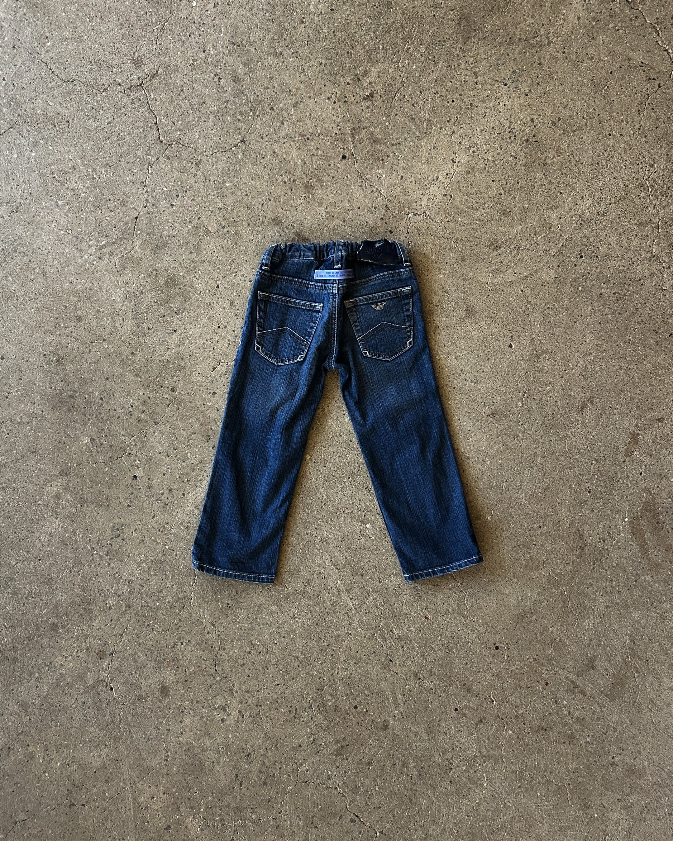 faded washed denim jeans from armani with classic logotype in rhinestone on backpocket