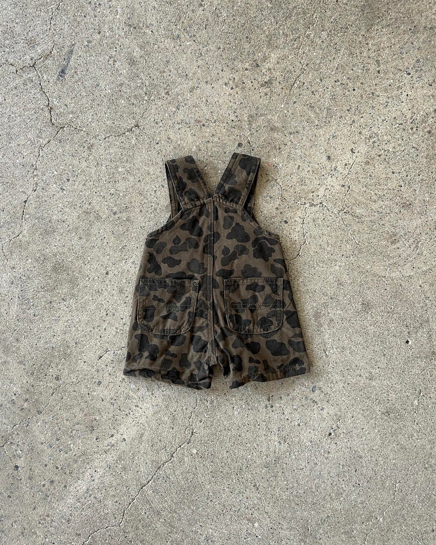 faded camo dungaree short made in light ripstop with snap buttons in crotch
