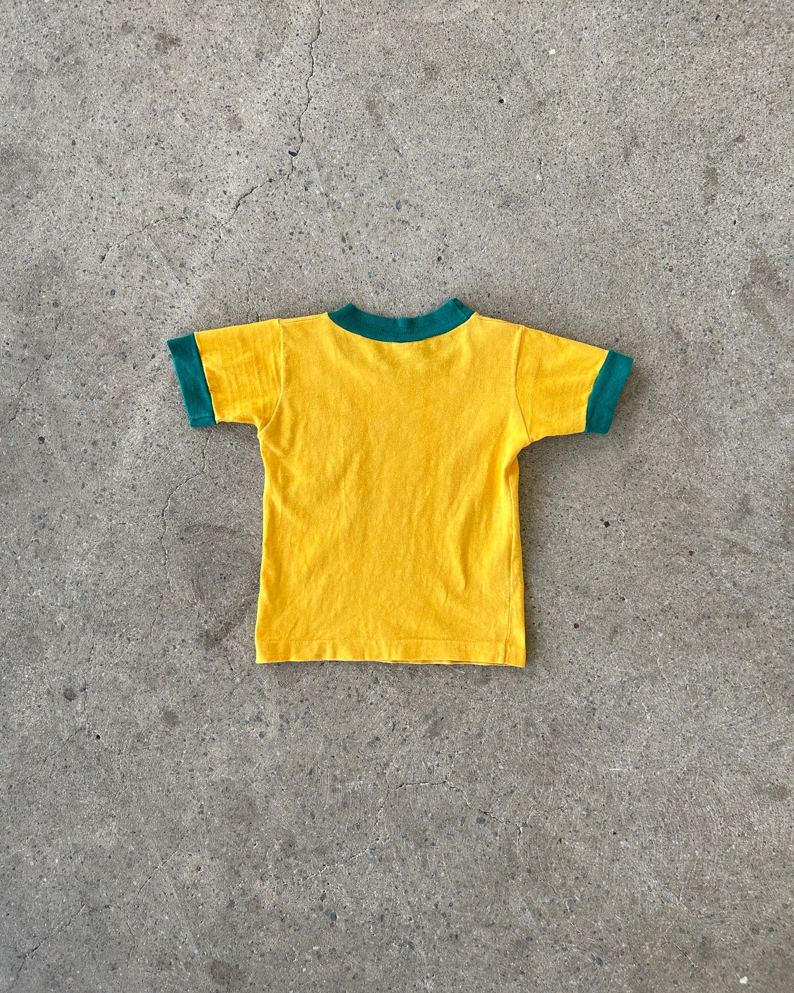 two-tone single stitch t-shirt with embroided graphics on front