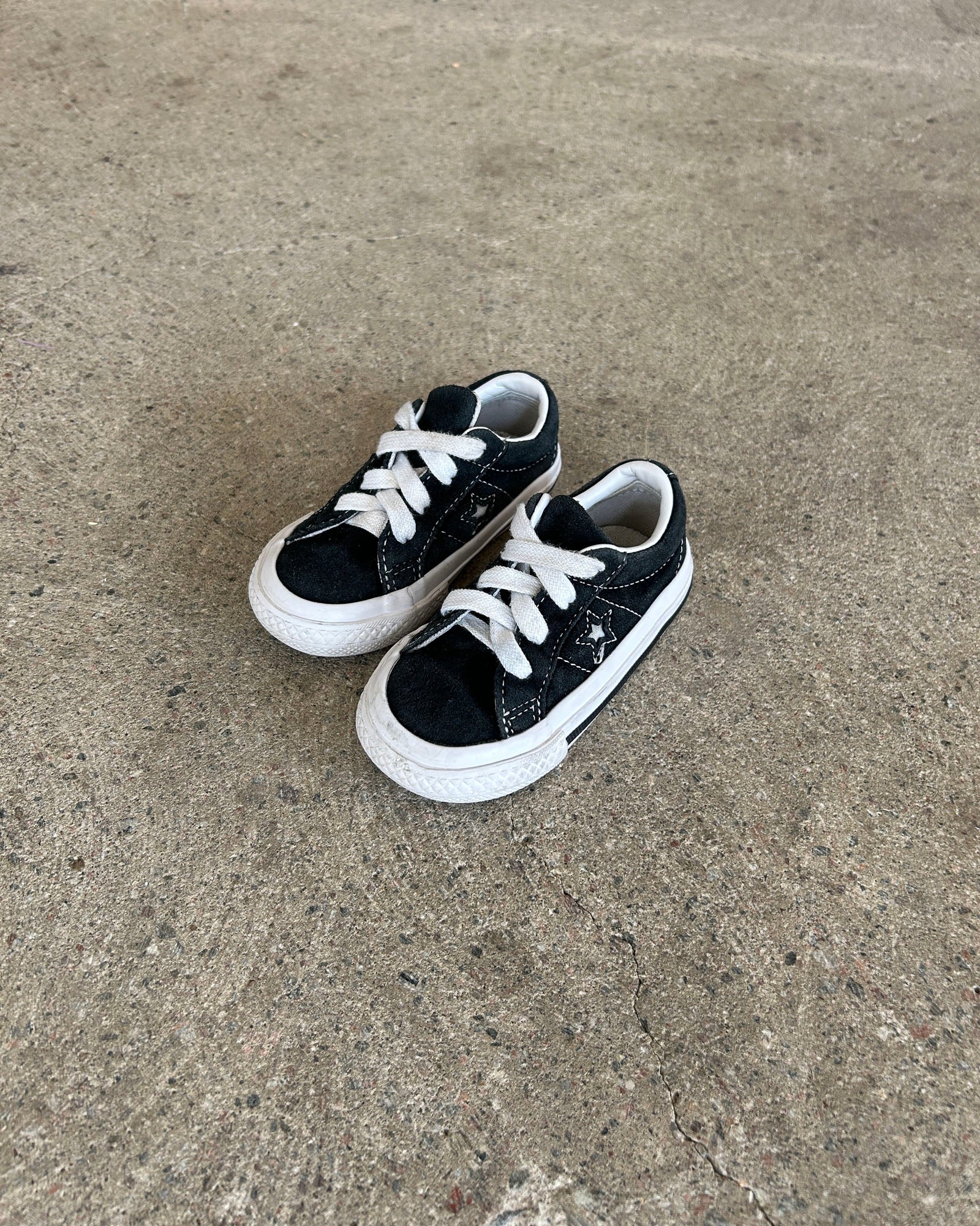 classic low-top sneaker from converse with iconic one star logo in leather, black suede upper and white rubber sole