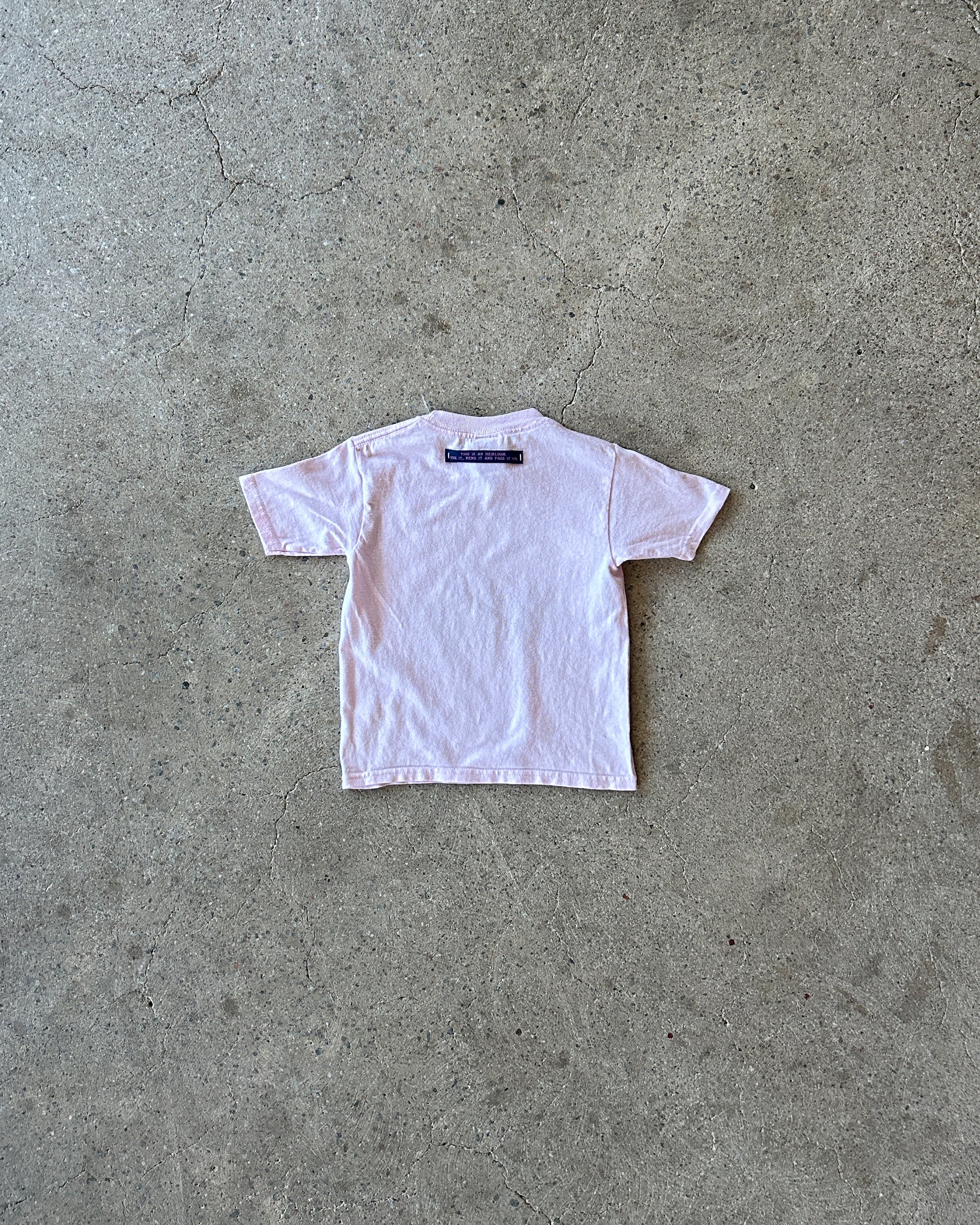 vintage pale pink t-shirt with printed glitter effects and color graphics