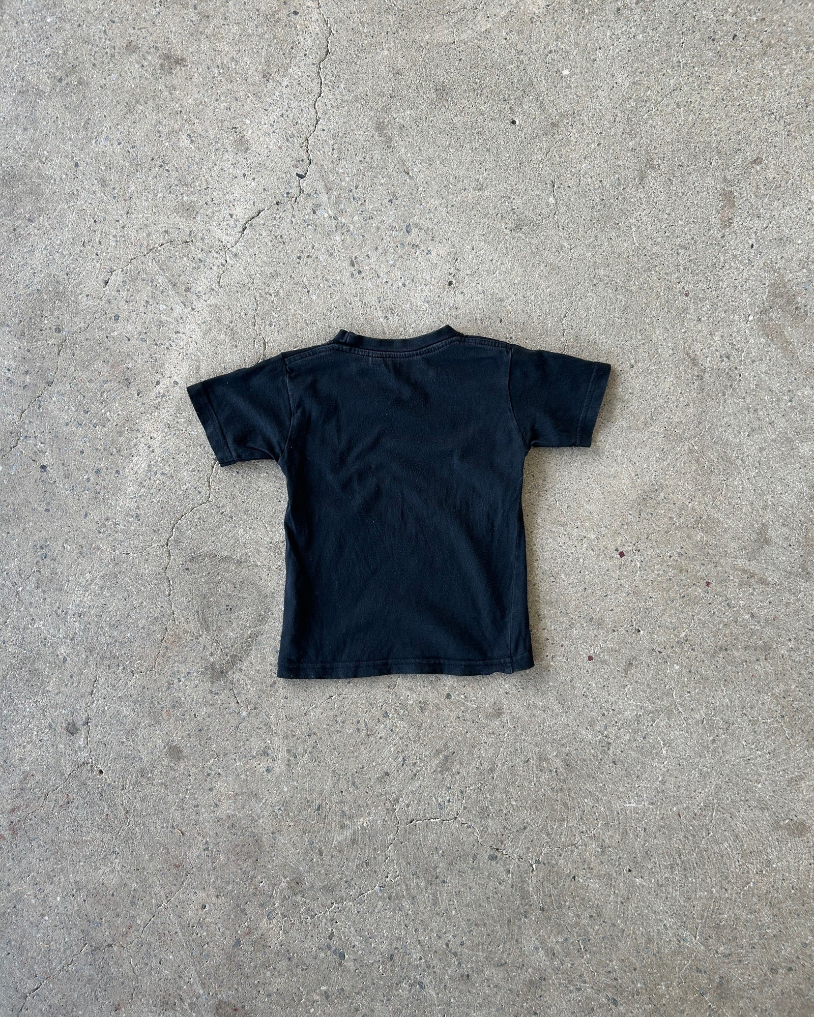 black t-shirt with screen printed graphics of all kiss members and logo on front