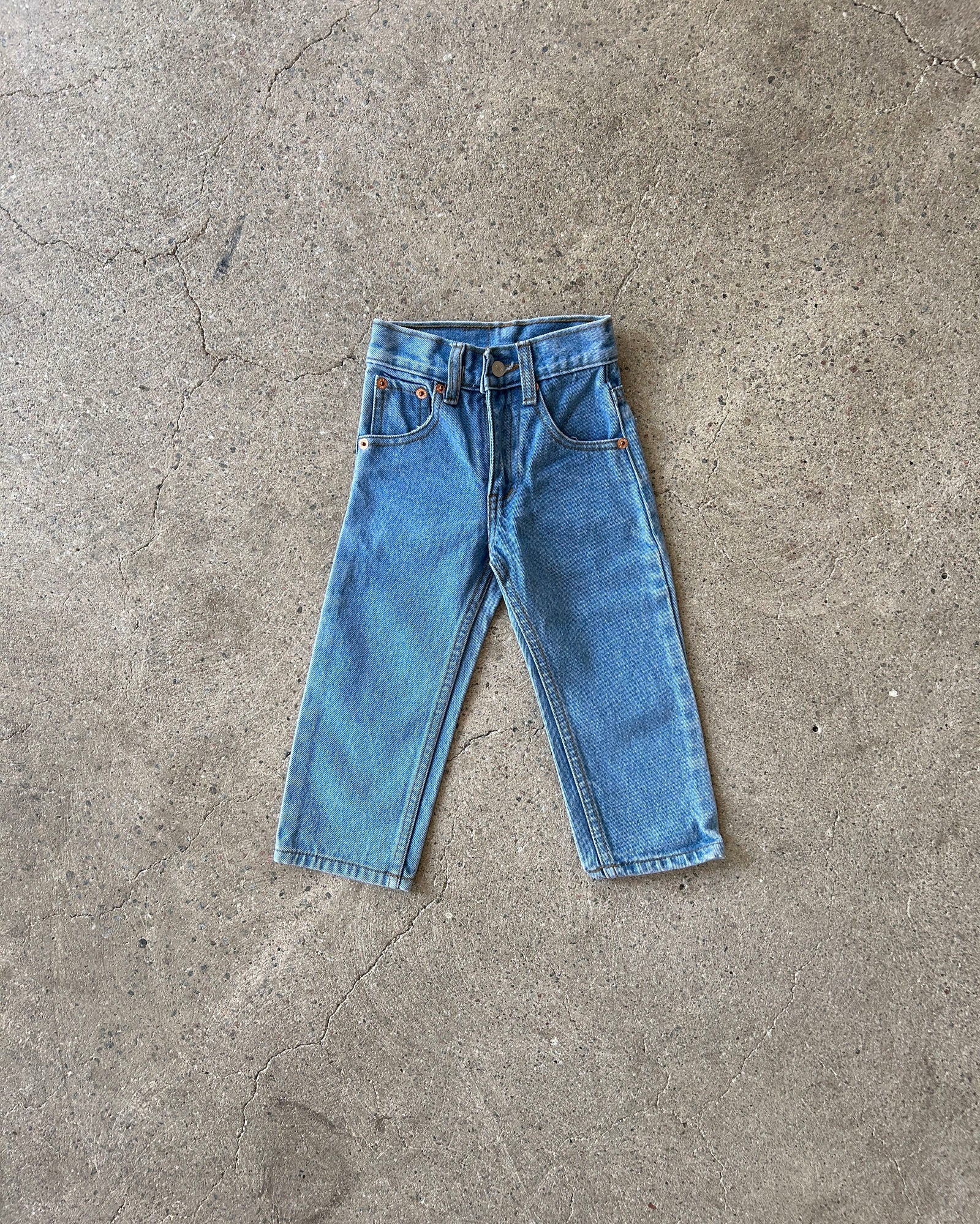 deadstock 5-pocket levi's jeans with original tags from 1984. classic fit in mid wash color, made in usa