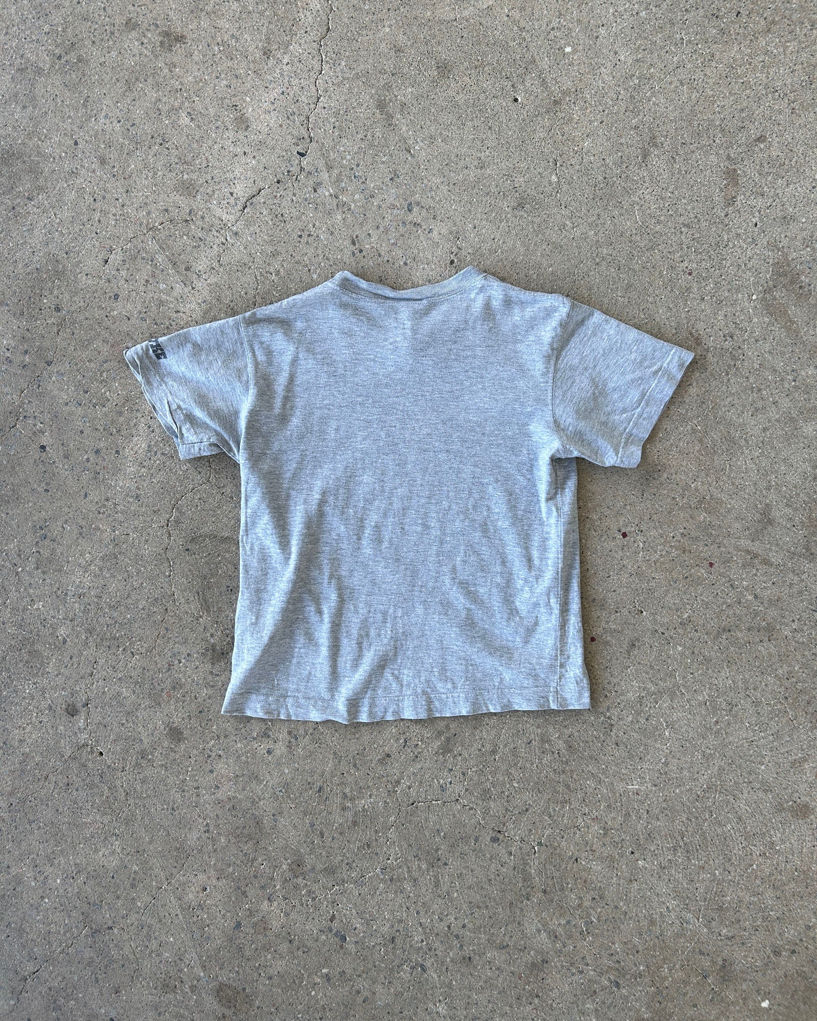 grey short sleeve t-shirt with faded screen printed graphics of lucky luke on front and logo on sleeve