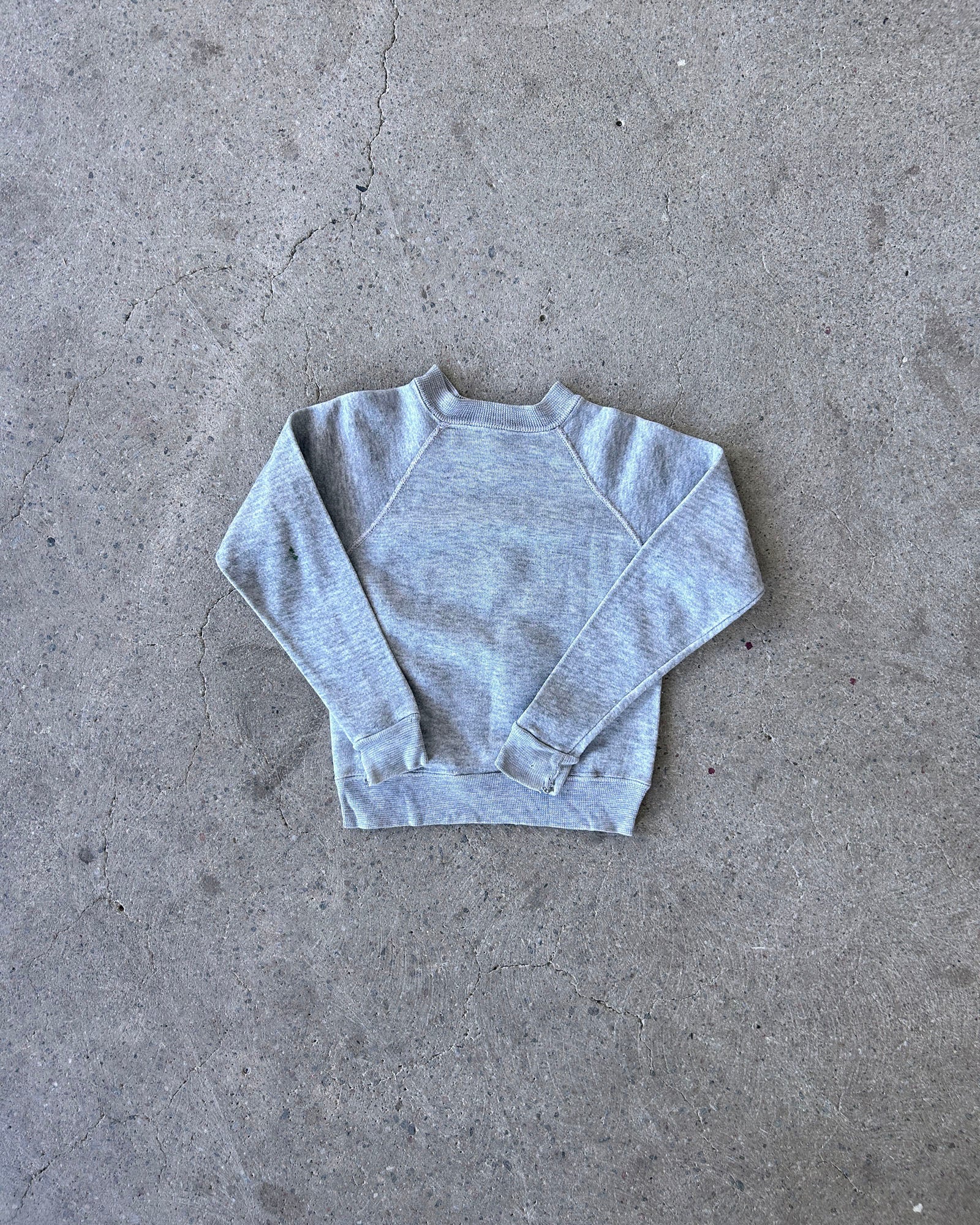 grey college raglan sweater with faded screen printed graphics of mickey mouse on front