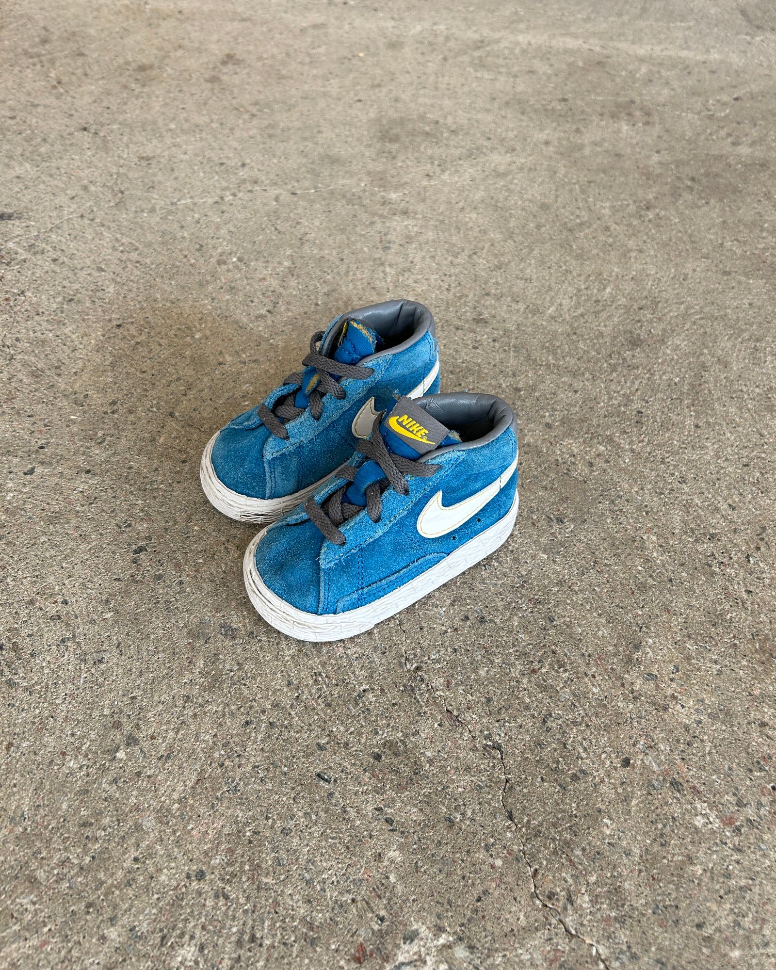 classic mid-top sneaker from nike with blue suede upper and rubber sole