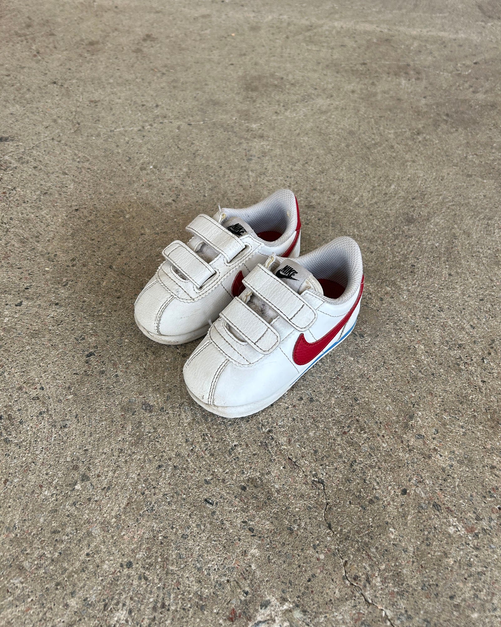 nike cortez basic sl, also know as 'the forrest gumps', in white leather upper with velcro straps
