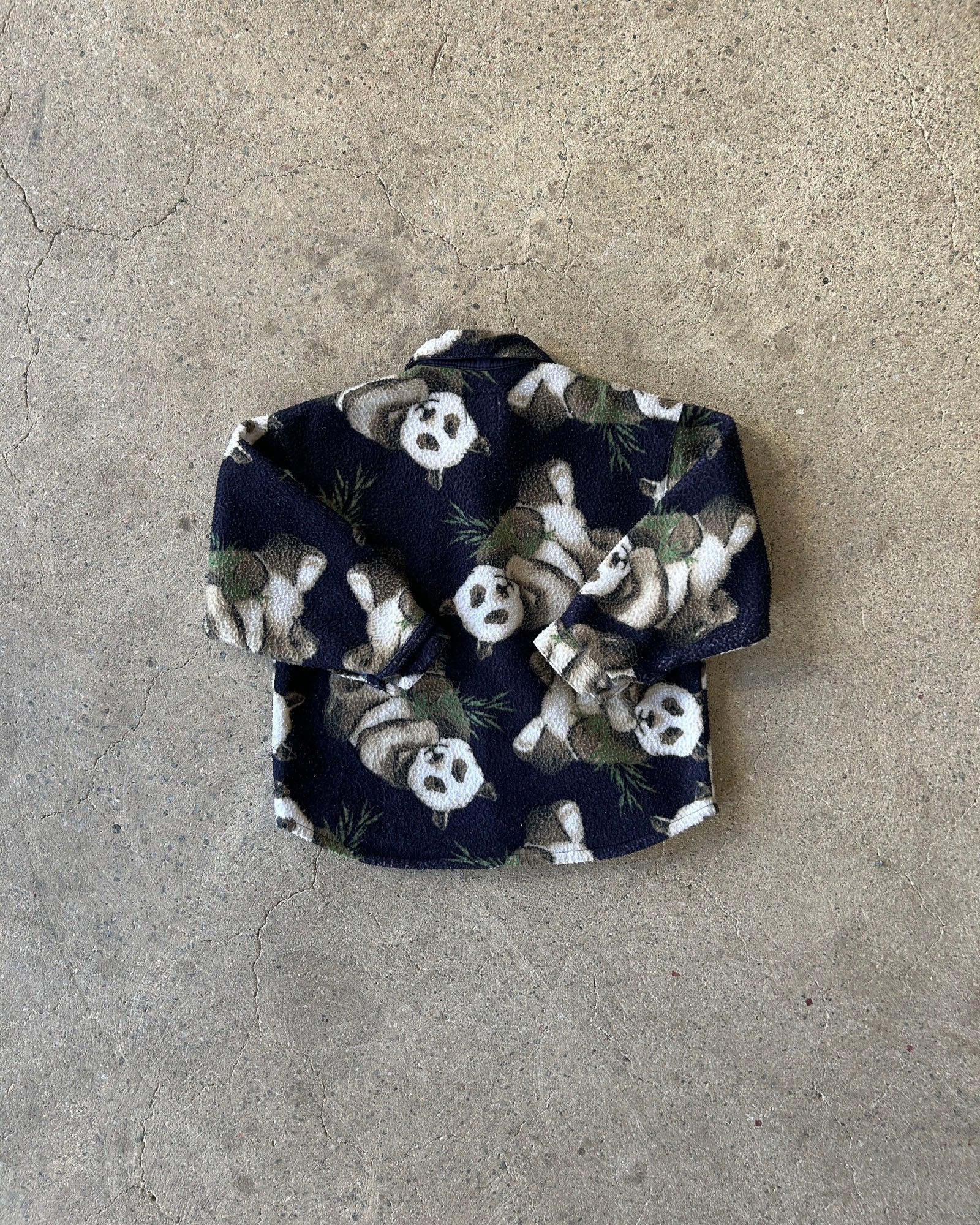 vintage fleece overshirt with single chest pocket and all over panda print front and back