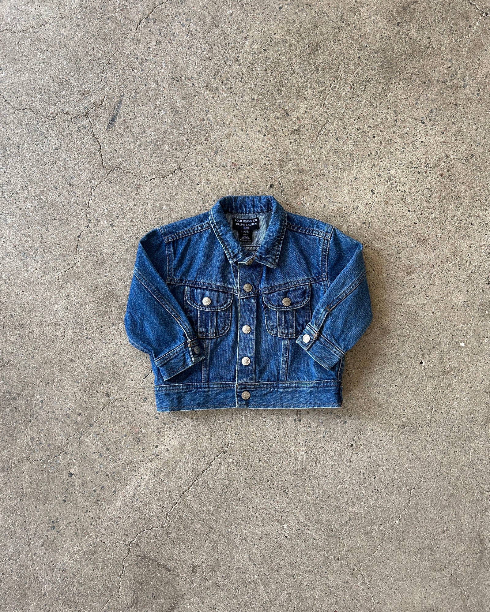 faded vintage polo jeans company denim trucker jacket with screen printed logo on back