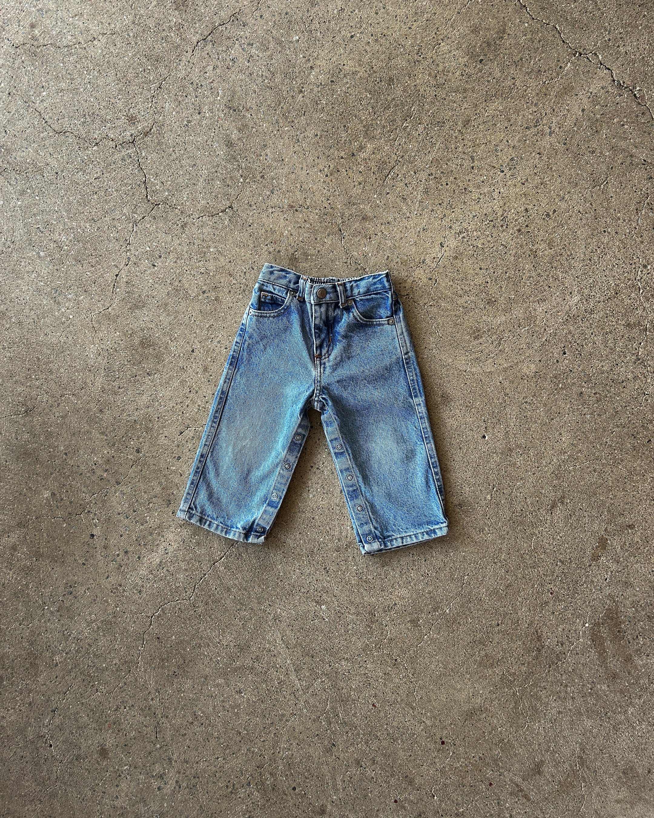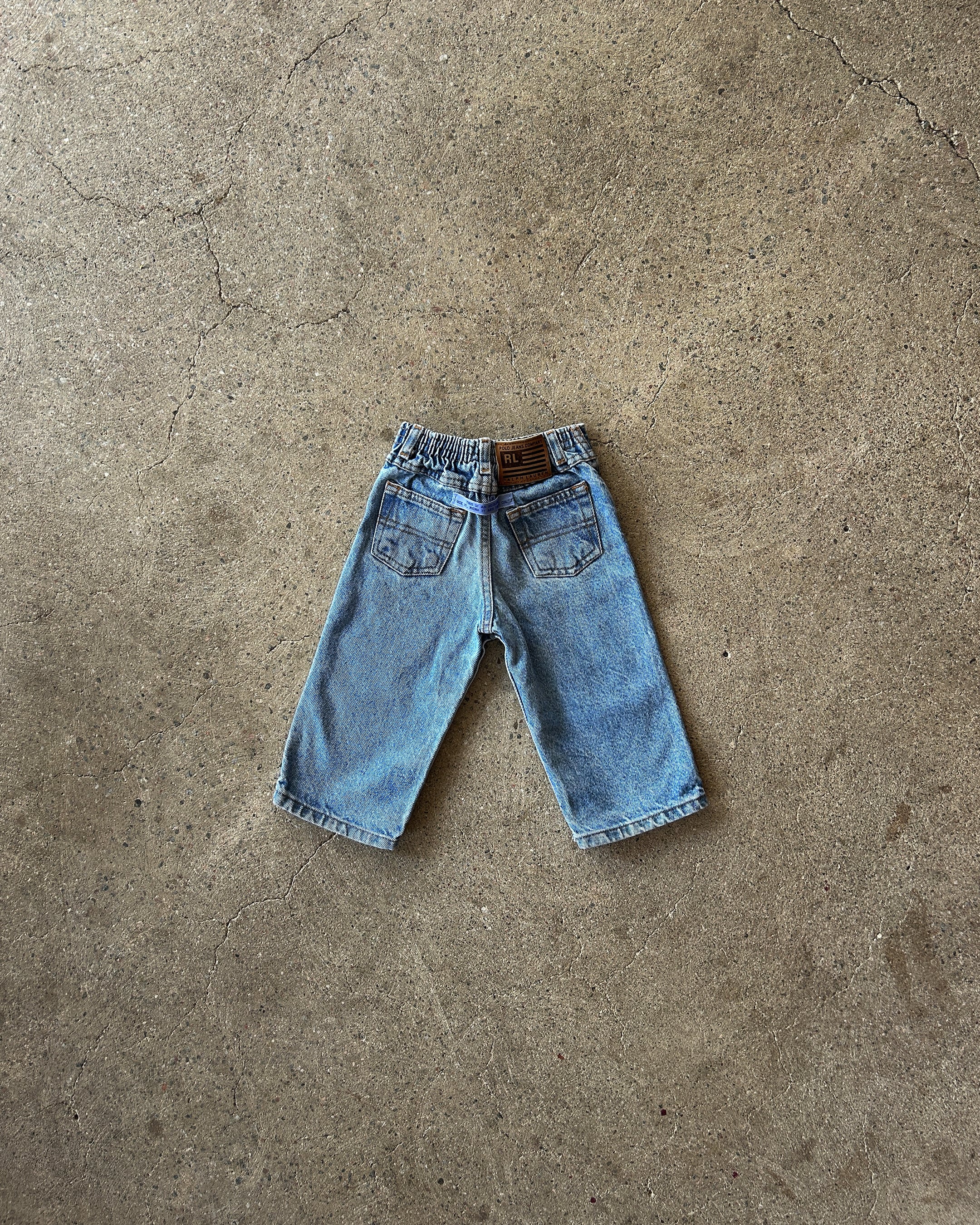 faded vintage polo jeans company denim with expandable waist and snap buttons in crotch