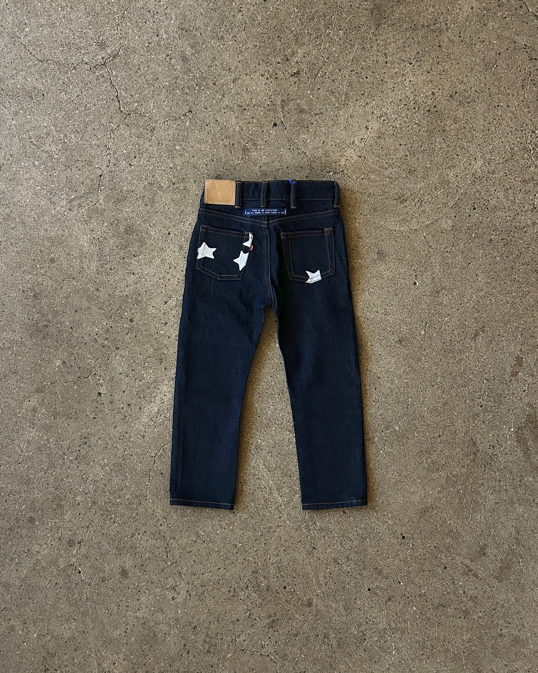 bear star p from acne studios blå konst with screen printed stars on raw denim