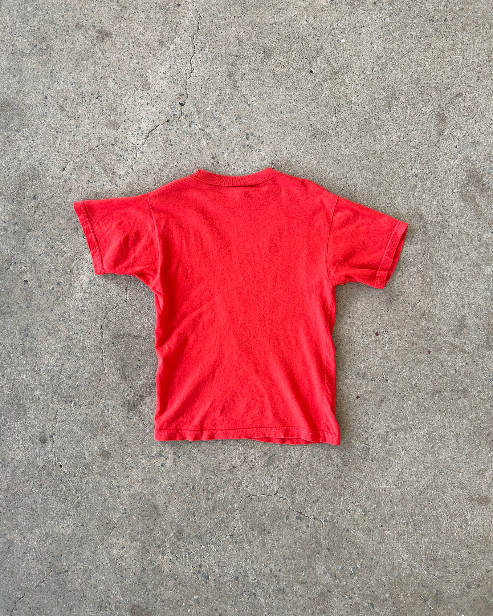 vintage h&m red short sleeve t-shirt with faded screen printed graphics of raphael